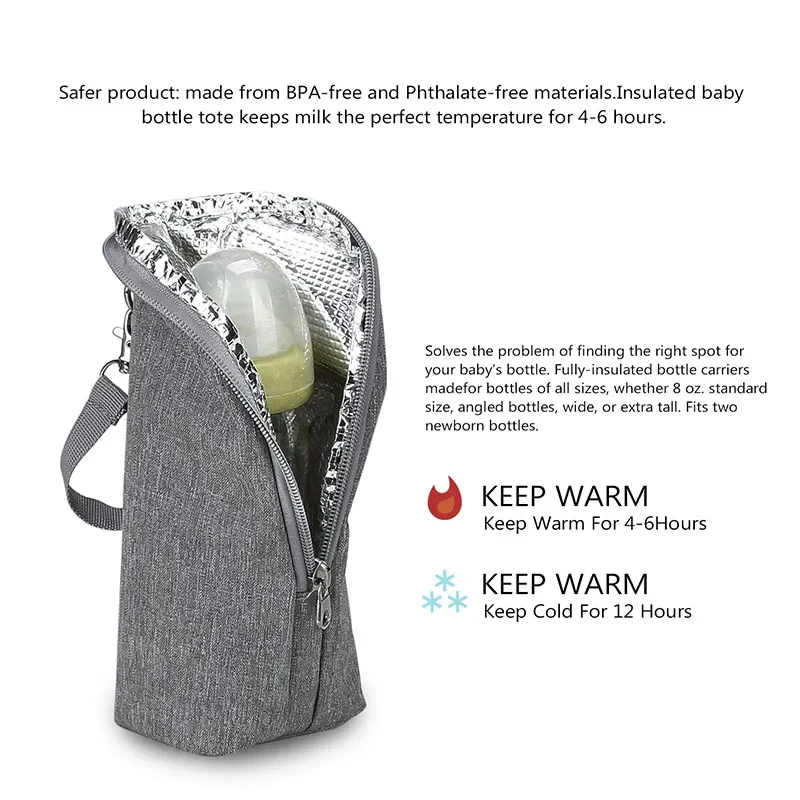 Constructed from durable aluminum mold and insulated materials, the bottle bag provides excellent thermal retention. It keeps milk, formula, or other beverages warm (or cool) for extended periods, ensuring your baby is always fed at a comfortable temperature.