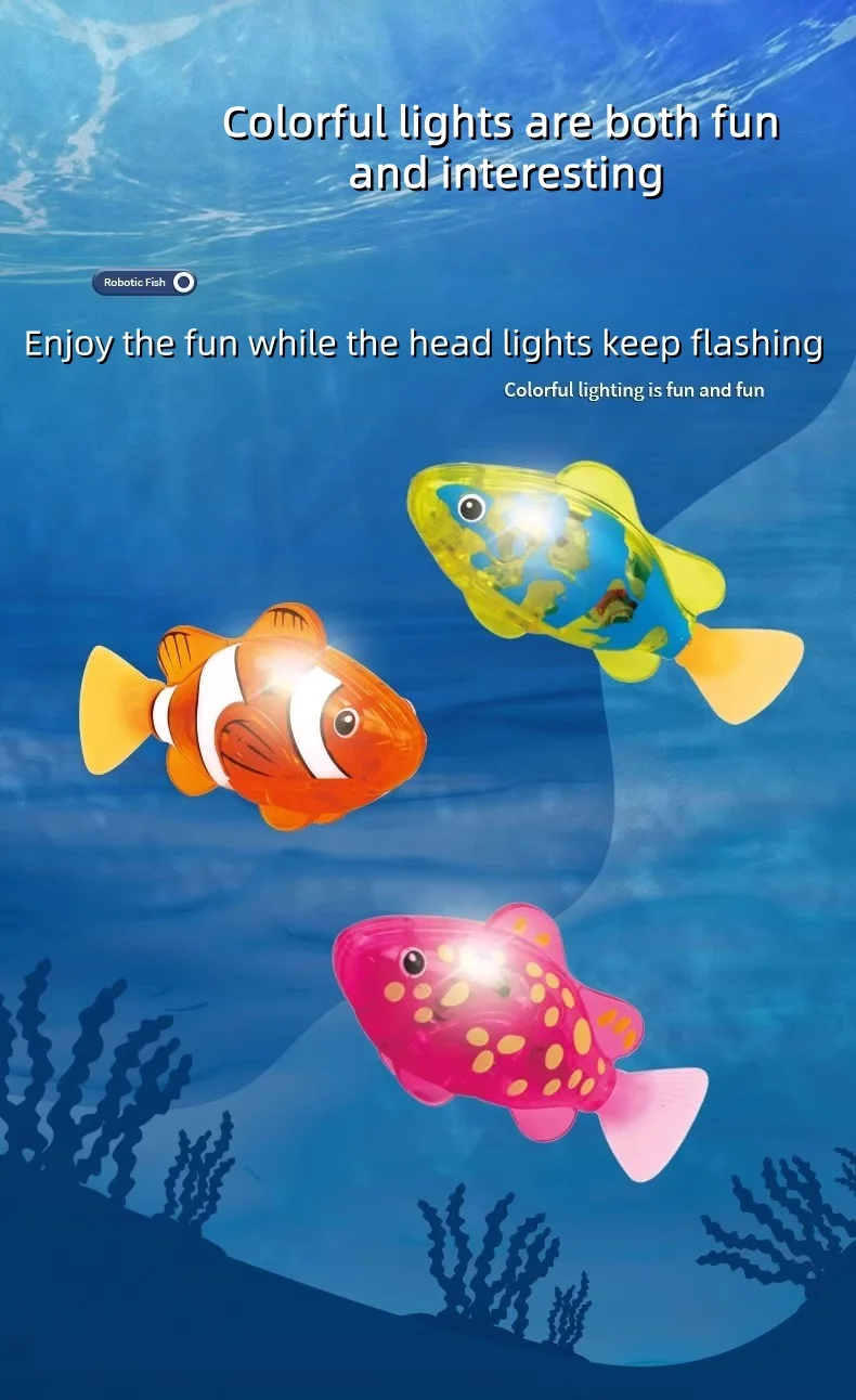 The small fish toy features sensor activation, allowing it to move and swim automatically when placed in water. Its lifelike swimming motion and glowing lights captivate children, turning ordinary bath time into a playful learning experience.