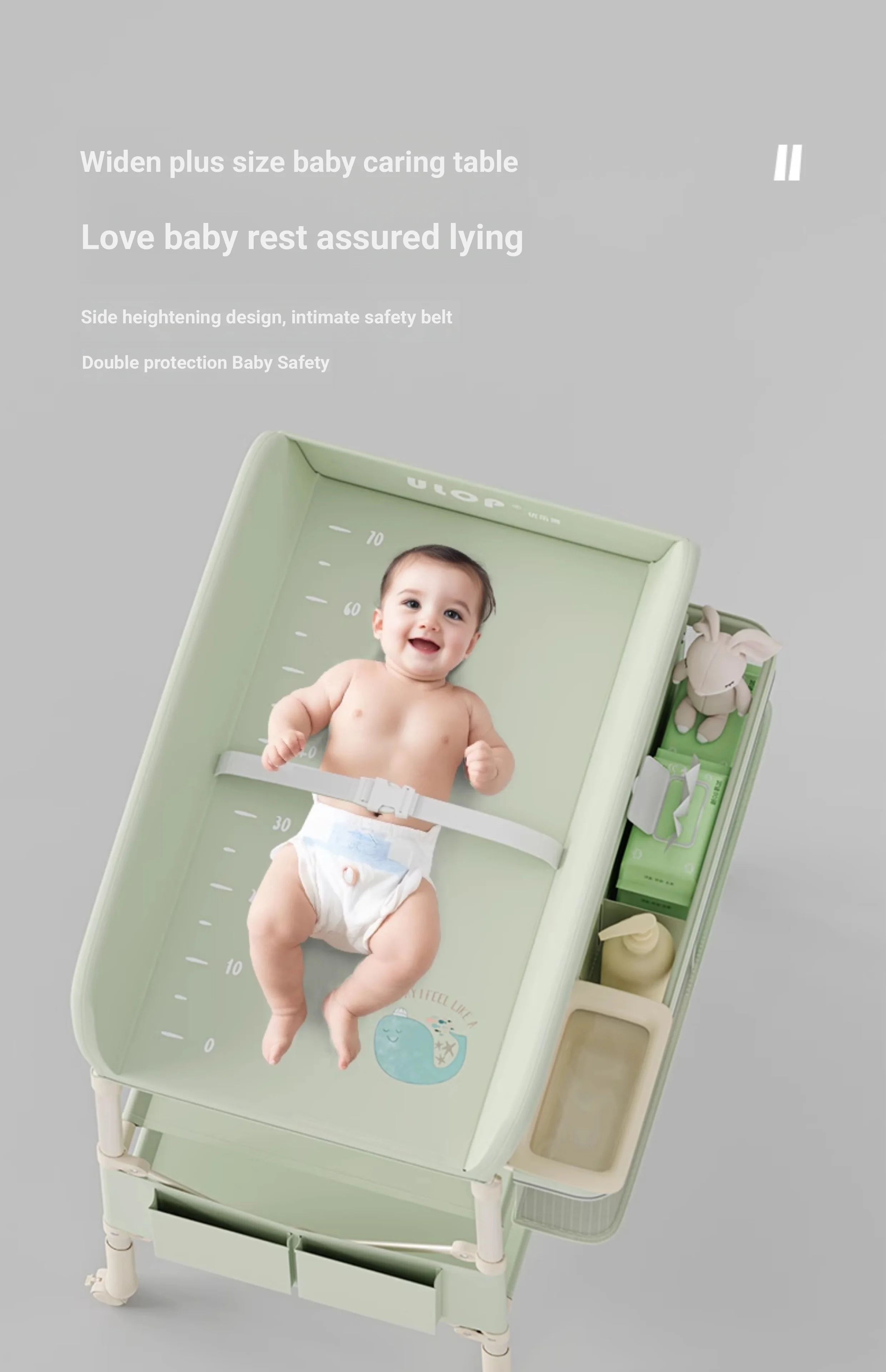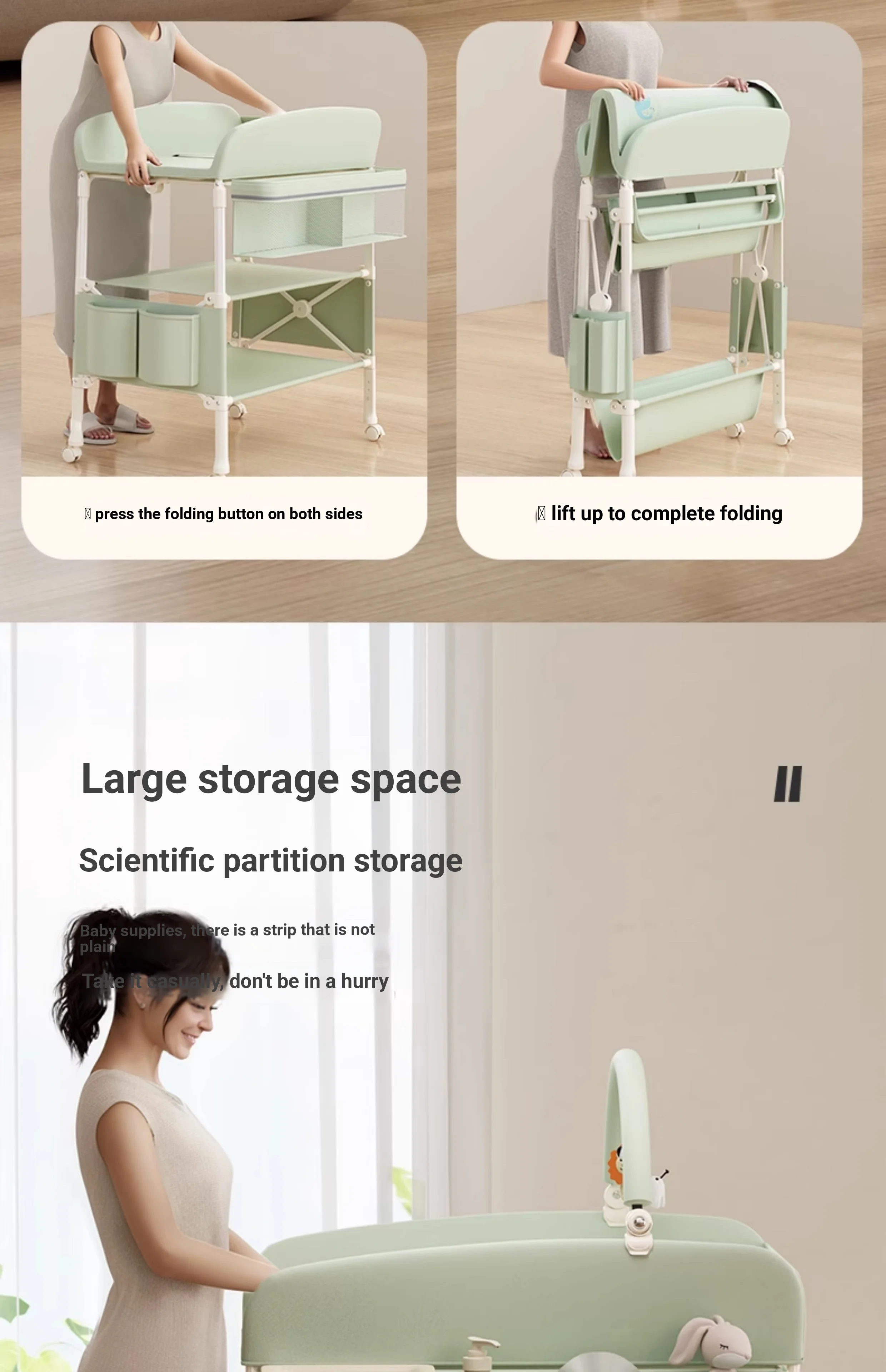 Invest in this foldable baby changing table to combine safety, convenience, and functionality. Its height adjustability, large storage, waterproof surface, and portable design make it an essential addition to any nursery, ensuring diaper changes are quick, safe, and stress-free.