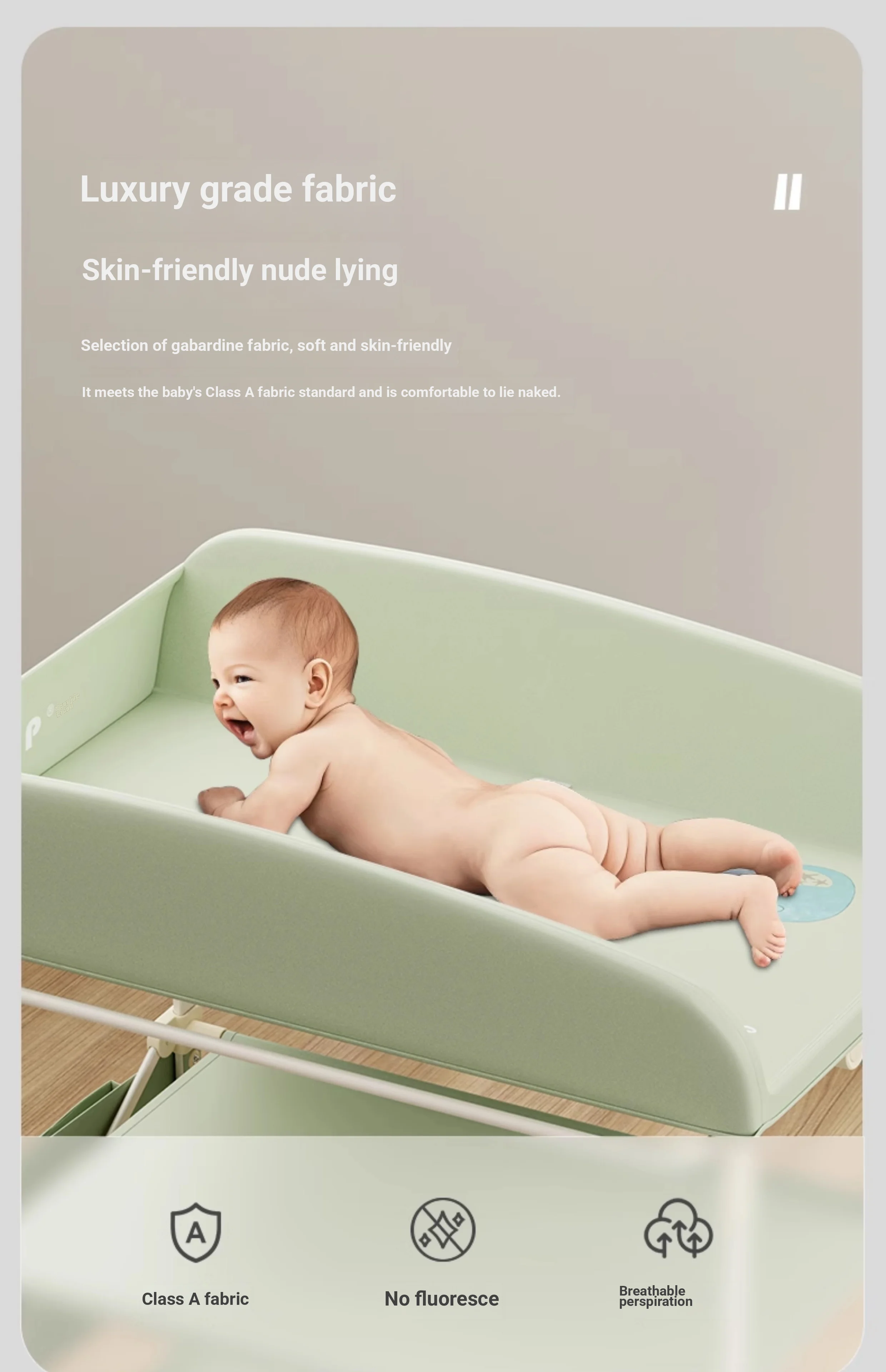 The changing surface is waterproof, preventing leaks and spills from soaking the table. Smooth, easy-to-wipe surfaces ensure quick cleaning after every diaper change. Durable, high-quality materials maintain hygiene and long-term usability.