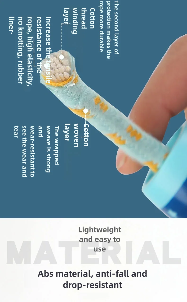 Made from durable cotton, the rope swings smoothly without tangling, allowing kids to jump continuously with ease. The soft material is gentle on the skin and safe for young users. Because it is adjustable, the rope length can be modified to suit children of different heights, making it perfect for growing kids or multi-user families.