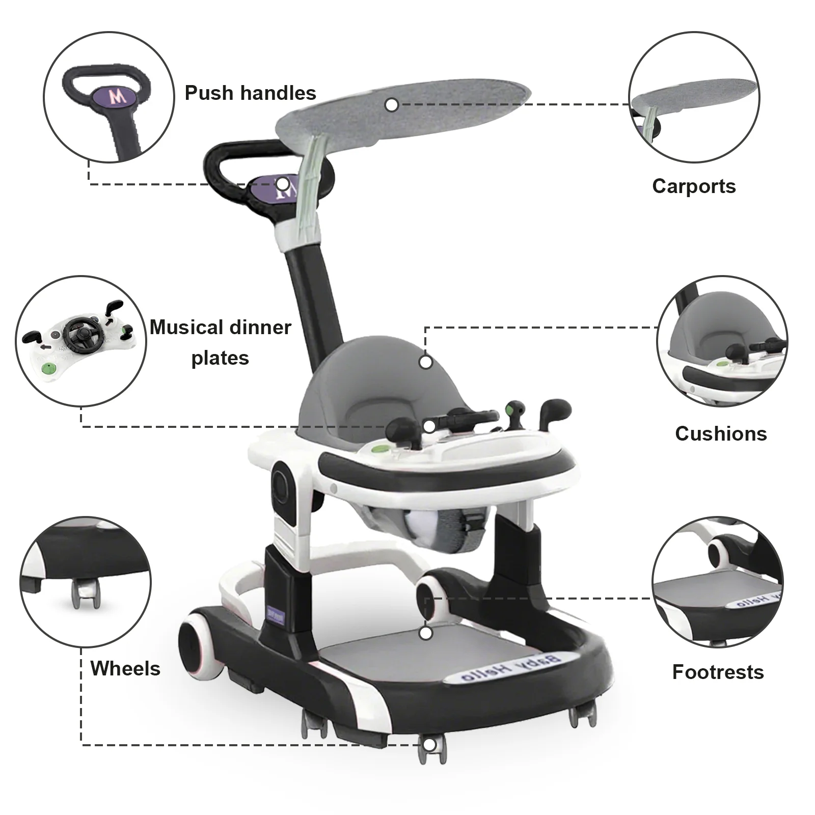 Invest in this multifunctional baby walker 2025 edition for a complete, safe, and entertaining walking experience. With its adjustable seat, sunshade, anti-rollover frame, and music features, it combines fun, comfort, and learning in one versatile walker for your infant.