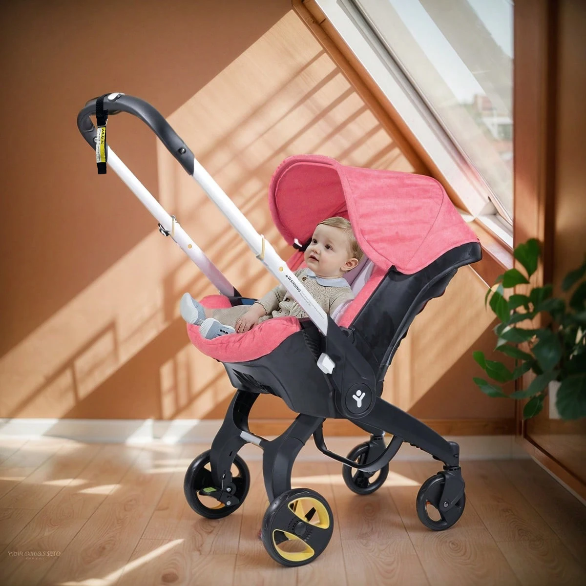 Built with a strong yet lightweight frame, this stroller ensures stability and shock absorption. Its design provides long-term use from infancy through toddler years. The protective canopy shields babies from sunlight, wind, and light rain, making it suitable for different weather conditions.